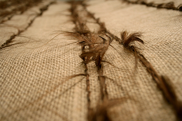 Burlap, Human Hair, Wood and Metal, 36(h)x54(w)x80(d) inches